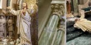 شاركت أبرشية إل باسو صوراً تم التقاطها لقلب يسوع الأقدس – تمثال عمره 90 عامًا – أُطيح به من مكانه فوق المذبح ، مما أدى إلى تدميره