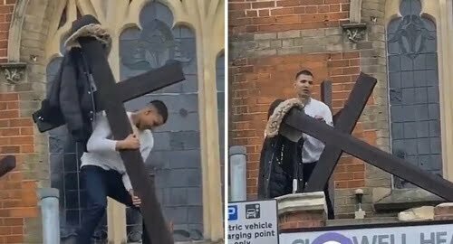 تحدثت كنيسة في شرق لندن عن محنتها بعد أن تم القبض على مخرب ظهر على شريط فيديو وهو يحاول إزالة صليبها. وقع الحادث المروع في كنيسة تشادويل هيث المعمدانية بعد ظهر يوم الأحد في وضح النهار.