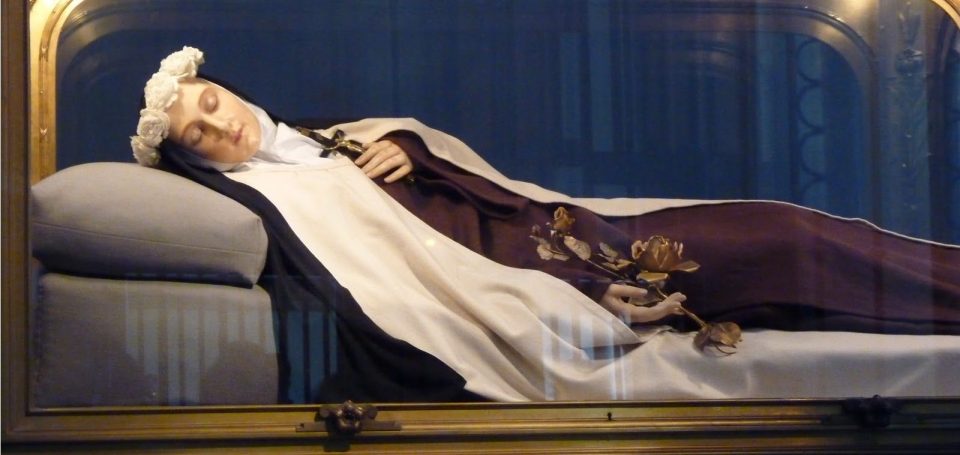 ولدت القديسة تيريزيا الطفل يسوع، في بلدة إلنسون سنة 1873، من أسرة مسيحية هي التاسعة بين أبنائها، وحين بلغت الخامسة عشرة من عمرها، انتسبت إلى دير سيدة الكرمل في ليزيو، حيث كانت قد سبقتها إليه ثلاثة من أخواتها.