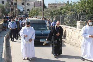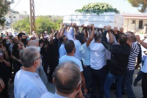 بالدموع والزغاريد والورود وقرع أجراس الكنيسة شيع جثمانه شهيداً دفاعاً عن أرضه وبلدته و شيع جثمانه وسط أجواء من الحزن والدموع والزغاريد وقرع أجراس الكنيسة ونثر الأرز والورود، وبعد أن سجي نعشه في صالون الكنيسة، أصر والده على فتح النعش وإلقاء نظرة أخيرة عليه، إلا أن كاهن الرعية الخوري بيار جبور تمنى عليه إبقاء صورته الأخيرة قبل وفاته في قلبه ووجدانه، وكان والده يردد “كان بطلاً نصيراً للفقير والمظلوم ومحباً لأرضه وبلده، نزل لحاله ليطفي الناركب حاله ووقع”.