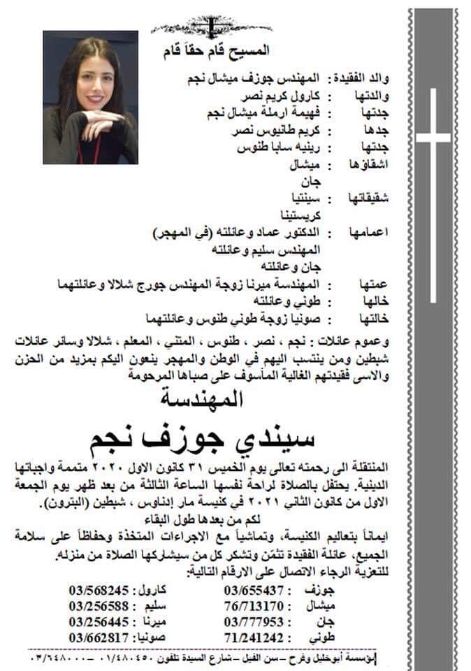 بعد صـ ـراع مع الألـ ـم، رحلت اليوم ساندي جوزف نجم المهندسة الشابة التي احبت الحياة وتركت ذكرياتها الجميلة في احضان اهلها وعائلتها واصدقائها.