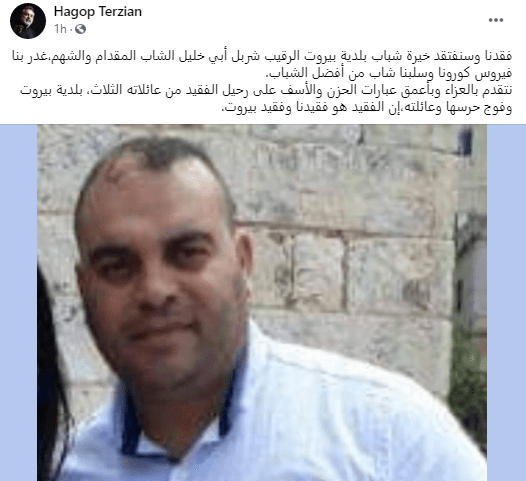 (غـ ـدر بنا كـ ـورونـ ـا وسـ ـلبنا شاب من أفضل الشباب)… (النائب هاغوب ترزيان يـنـ ـعي الرقيب شربل)