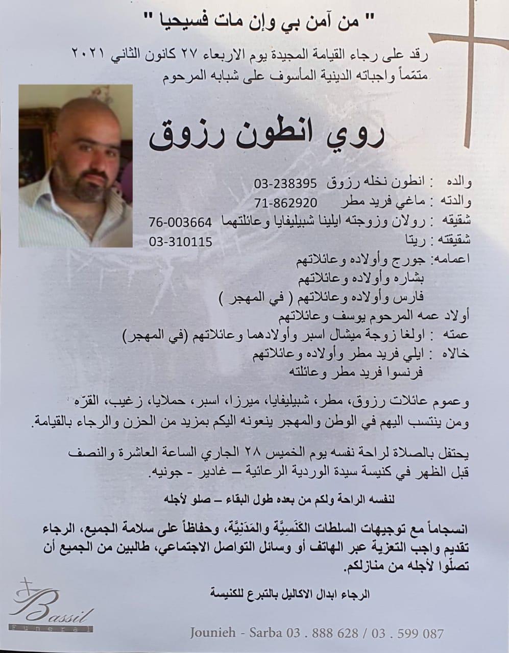 جونية وغادير خصوصا تودع ابنها روي رزوق بعد وفاته اثر مضاعفات كـ ـورونا.