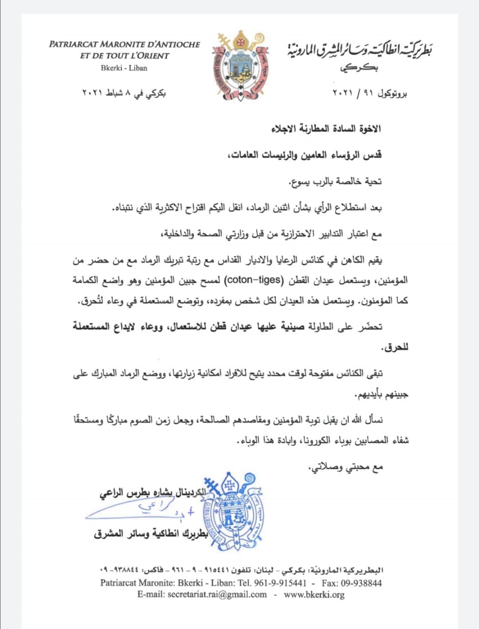 اليكم ما قررته البطريركية المارونية بشأن اثنين الرماد بعد اقتراح الاكثرية !