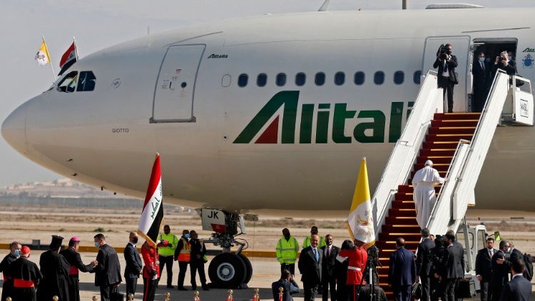 أقلعت الطائرة البابوية قرابة الساعة العاشرة من صباح الاثنين بالتوقيت المحلي بعد أن جرت مراسم الوداع على أرض مطار بغداد. توجه البابا إلى العراق يوم الجمعة كحاجّ سلام في زيارة حملت شعار “أنتم جميعا أخوة”. شاء البابا أن يزور تلك الأرض المعذبة ويعانق شعباً عانى الأمرّين وهو يتوق اليوم إلى السلام والتعايش المشترك والوئام.