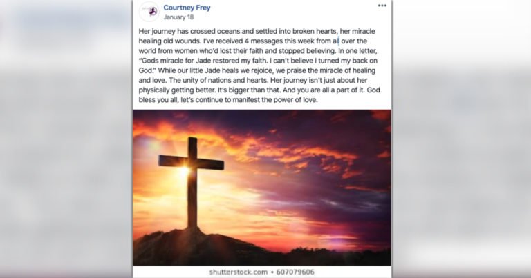 قالت كورتني جدة جايد: “أجلس هنا هذا الصباح الباكر وأنا أشعر بالرهبة والصدمة”. “أسبح إلهًا لا حدود لمحبته لنا جميعًا. لم تحدث معجزة لـ Jade فقط ولكن رحلتها جلبت الآلاف إلى النور. . . إنها تذكيرنا بأننا جميعًا نستحق أن نكون كاملين وسعداء ومحبين “. لقد اجتمع الكثير من الناس معًا مثل أيدي وأرجل المسيح ، وأغدقوا على العائلة بالحب والدعم وهذا يعني الكثير بالنسبة لهم.