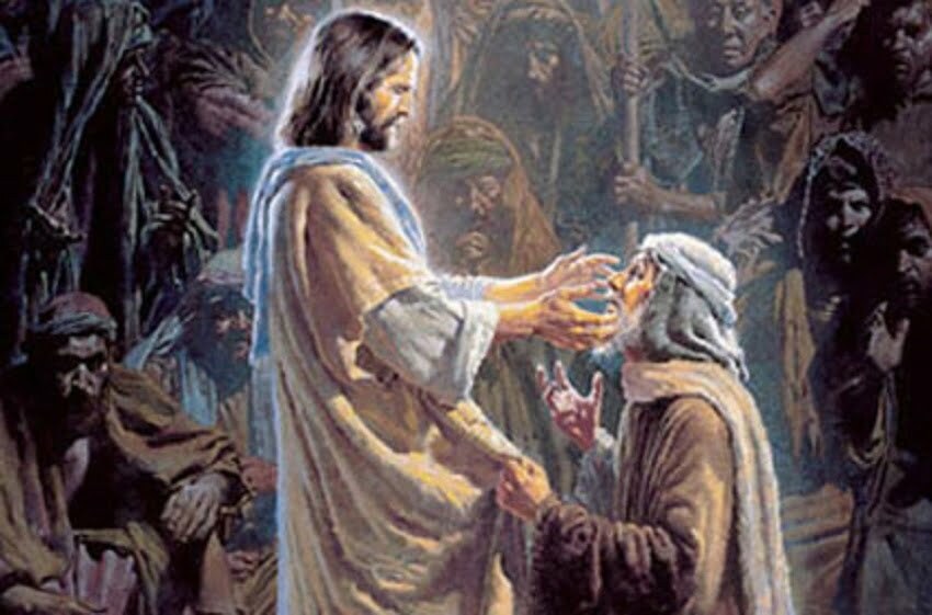 بَيْنَمَا يَسُوعُ خَارِجٌ مِنْ أَرِيحا، هُوَ وتَلامِيذُهُ وجَمْعٌ غَفِير، كَانَ بَرْطِيمَا، أَي ٱبْنُ طِيمَا، وهُوَ شَحَّاذٌ أَعْمَى، جَالِسًا عَلَى جَانِبِ الطَّريق.