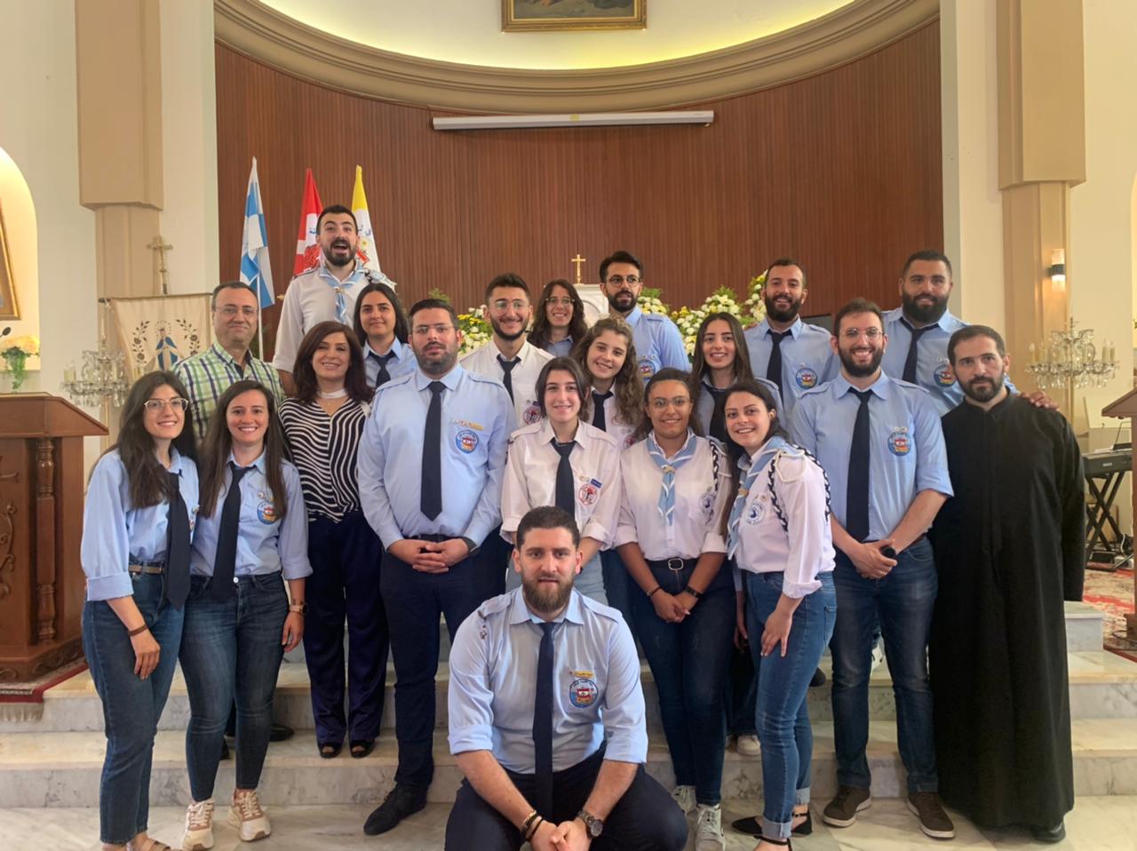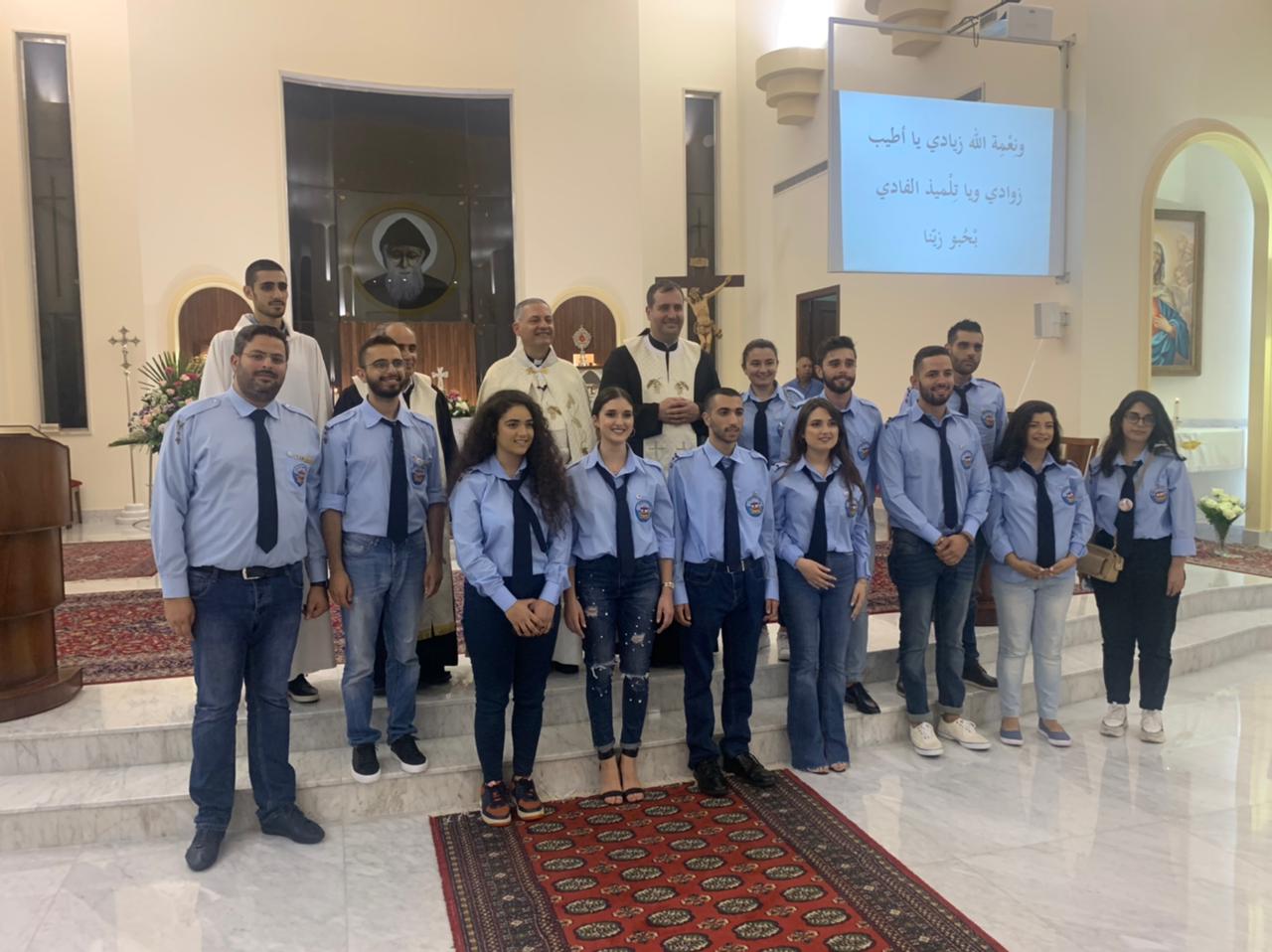 ترأس الذبيحة الالهية كاهن الرعية الخوري جورج شهوان بمشاركة النائب العام في الرهبانية المريمية الاب المدبر إدمون رزق (مرشد عام رابطة الأخويات في لبنان) الذي قَبِل رتبة الوعد الأول كما ينص قانون رابطة الأخويات في لبنان وبمشاركة رئيس دير قلب يسوع – جونية الأب أنطوان سلامة ، وشارك فيه رئيس اللجنة المركزية لأخويات شبيبة العذراء في لبنان جميل كسّاب، رئيس اللجنة الإقليمية لأخويات شبيبة العذراء في جونية ادغار بو خليل وأعضاء اللجنة الإقليمية للشبيبة، ورؤساء وأعضاء اللجان الإقليمية لأخويات فرسان وطلائع العذراء في إقليم جونية.